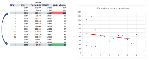 With support from other areas, orders with issues were identified and the time needed to resolve them was reduced, representing a major benefit. In this regard, order launching was automated, and slotting was optimized to improve preparation. Additionally, the main goal was continued: maintaining the service level as a priority within the company.