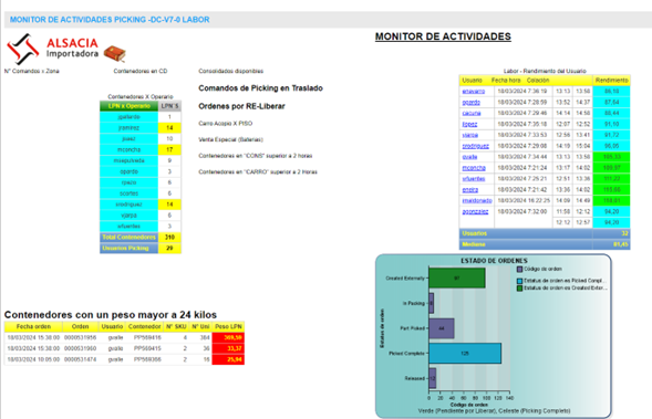 Dashboard part for Labor and picking workload by zones (command tracking):