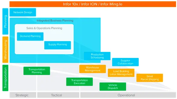 - Redes empresariales de cadenas de suministro en un nivel multiempresa. Es una forma que lleva a la implementación de herramientas a nuevas dimensiones. Un ejemplo de esto es GT Nexus, adquirida por INFOR en el 2015. Esta es una plataforma en la nube que ha agrupado a compañías y proveedores logísticos por más de 20 años.